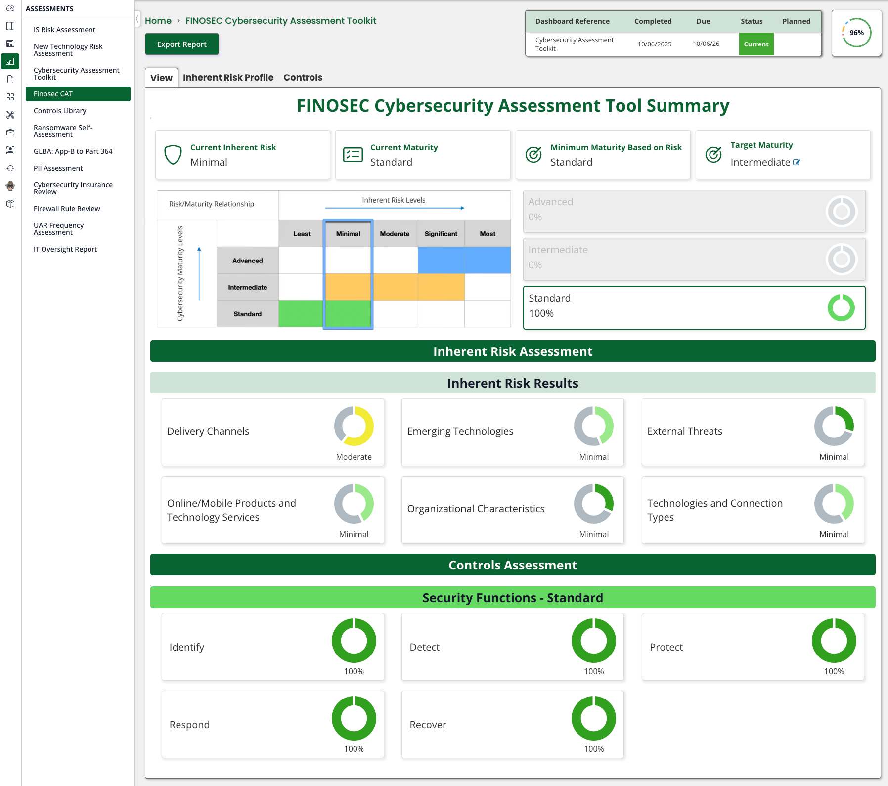 The Executive Reporting from the Finosec CAT is similar to reporting historically found in the FFIEC CAT, so your board will not have to learn anything new.